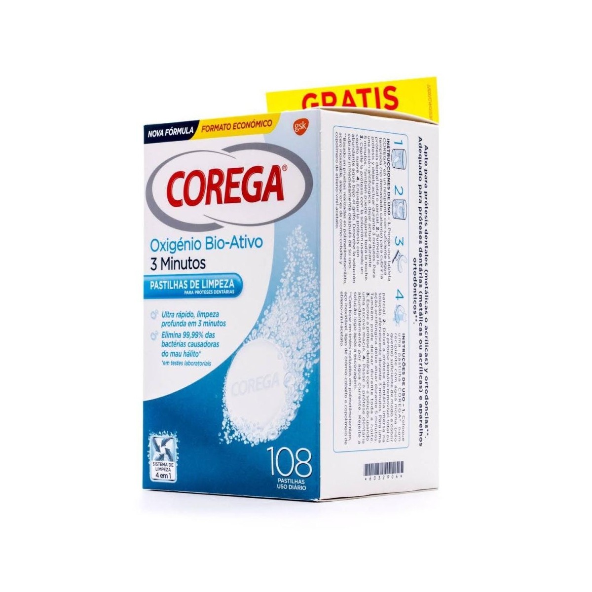 Tabletas limpiadoras específicamente indicadas para la higiene de prótesis dentales especialmente diseñadas para lograr una limpieza diaria y profunda. Estas tabletas limpiadoras se indican tanto para prótesis totales como parciales. Se aconseja introducir una tableta Corega Acción Total en un recipiente de agua templada. Una vez disuelto por completo introducir la prótesis a limpiar y dejar actuar durante toda la noche. Por la mañana cepillar con suavidad la prótesis y finalmente aclarar con abundante agua. No reutilizar la suspensión.