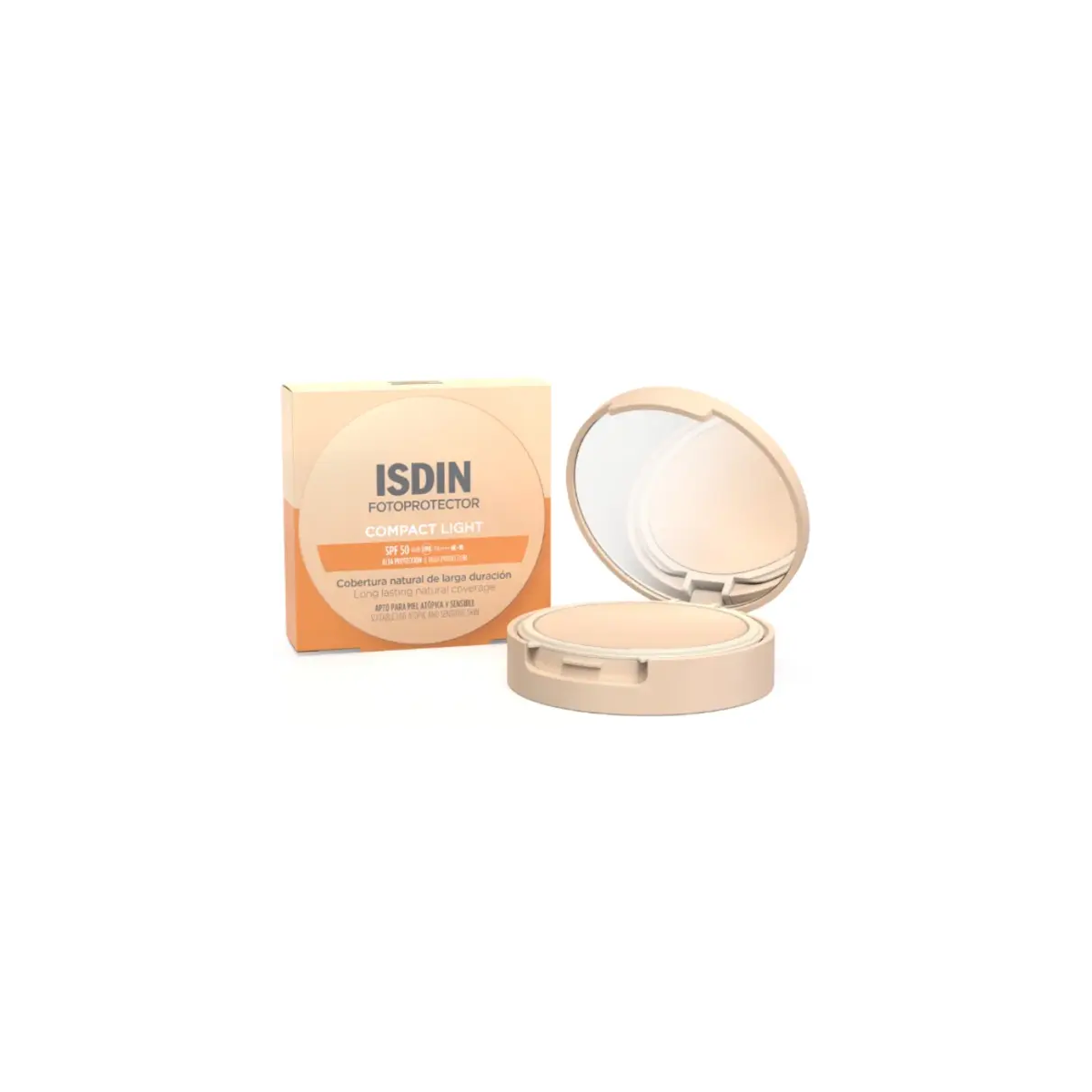 Isdin Compact Bronce es un maquillaje compacto en tono bronce con muy alta protección UVB/UVA. Protege y matifica en un único gesto, proporciona una sensación de confort, ofrece una cobertura natural de larga duración y unifica el tono de la piel, difuminando las imperfecciones. Es resistente al agua, oil free y no comedogénico.